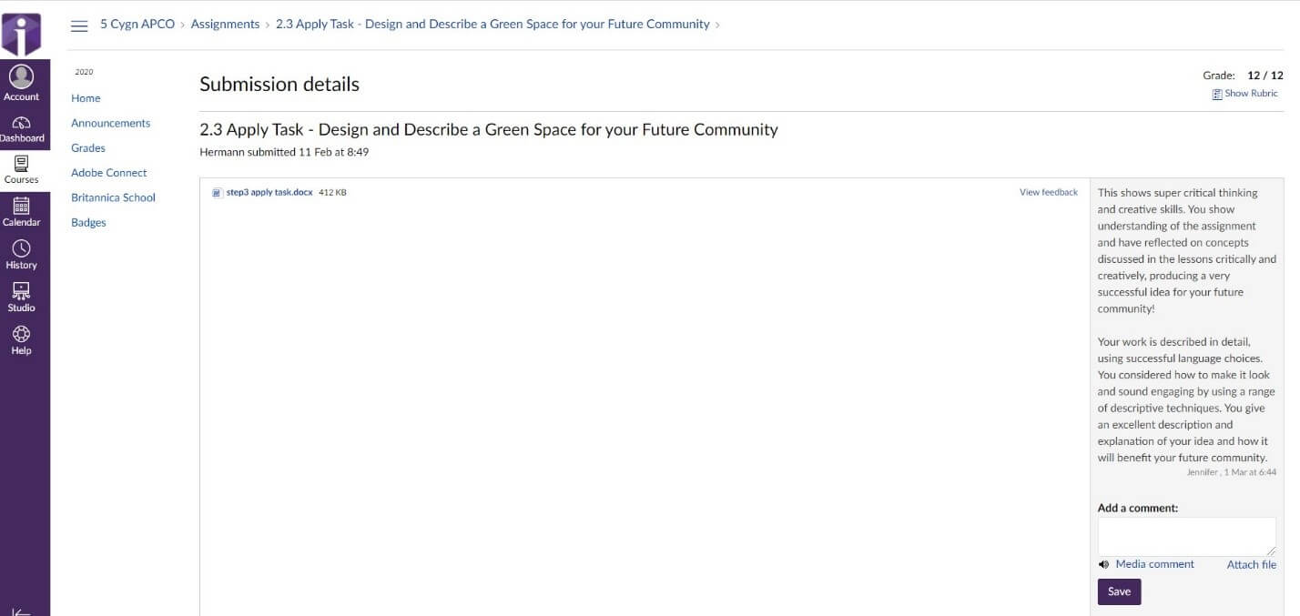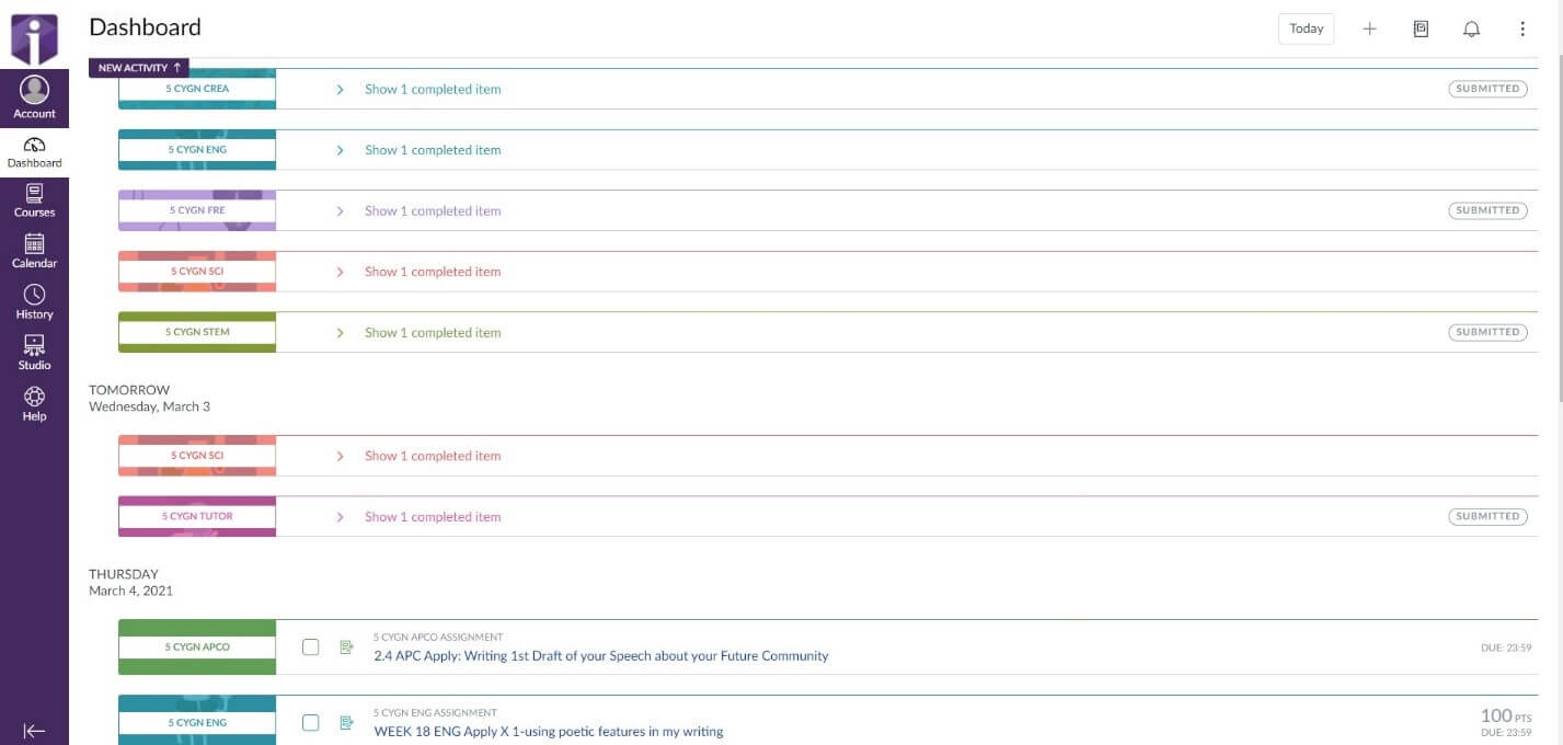 У учеников есть личный кабинет, где они выполняют домашние задания. У каждого задания есть dead line - крайний срок, когда можно загрузить готовое задание, после этого срока – уже не будет технической возможности это сделать. Это очень организует ребёнка, сделать задание вовремя, распределить своё время в течение недели. Учитель всегда проверяет и пишет личные комментарии относительно каждого задания. У родителя также есть доступ к своему личному кабинету, где он видит успеваемость и посещаемость своего ребёнка, а также семестровые отчёты учителей про успеваемость и активность ребёнка на уроках и другую важную информацию.